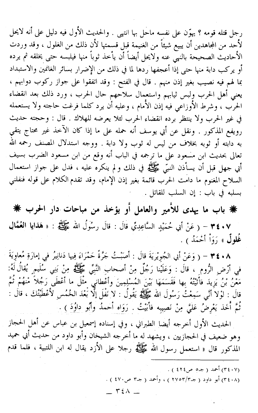 3407 - (عَنْ أَبِي حُمَيْدٍ السَّاعِدِيِّ قَالَ: قَالَ رَسُولُ اللَّهِ - صَلَّى اللَّهُ عَلَيْهِ وَسَلَّمَ -: «هَدَايَا الْعُمَّالِ غُلُولٌ» رَوَاهُ أَحْمَدُ) .