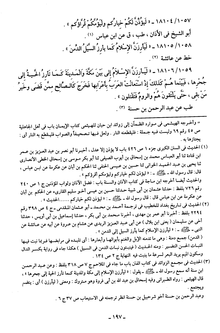 1058/ 18105 - "لَيَأرِزَنَّ الإِسْلامُ كَما يأرِزُ السَّيلُ الدِّمنَ".