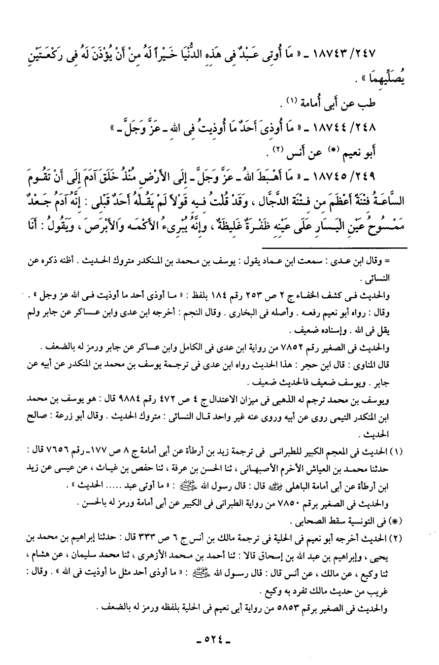 248/ 18744 - "مَا أُوذِى أَحَدٌ مَا أُوذِيتُ فِي اللهِ -عَزَّ وَجَلَّ-".