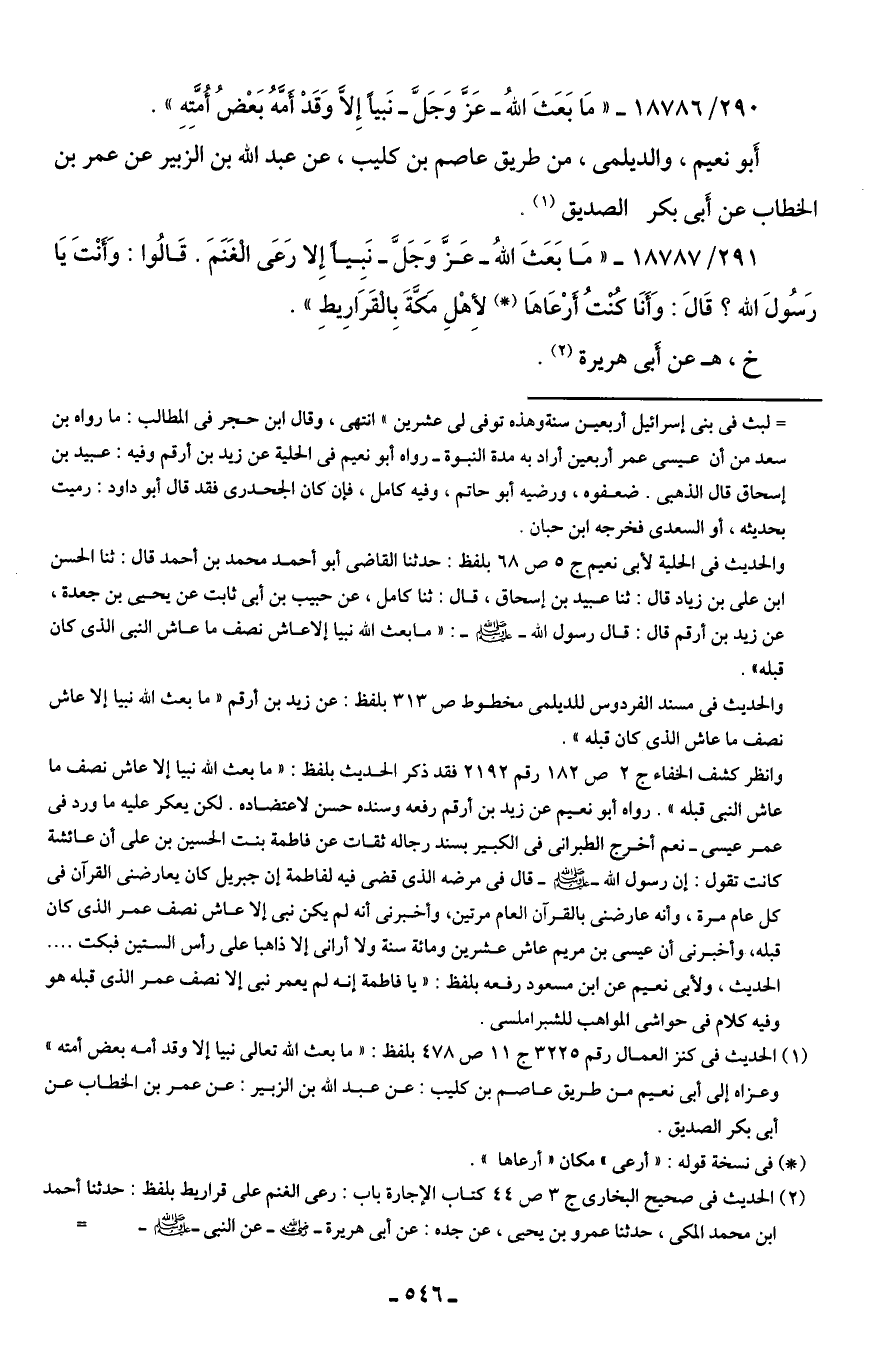 (¬1) الحديث في كنز العمال رقم 3225 ج 11 ص 478 بلفظ: "ما بعث الله تعالى نبيا إلا وقد أمه بعض أمته" وعزاه إلى أبي نعيم من طريق عاصم بن كليب: عن عبد الله بن الزبير: عن عمر بن الخطاب عن أبي بكر الصديق.