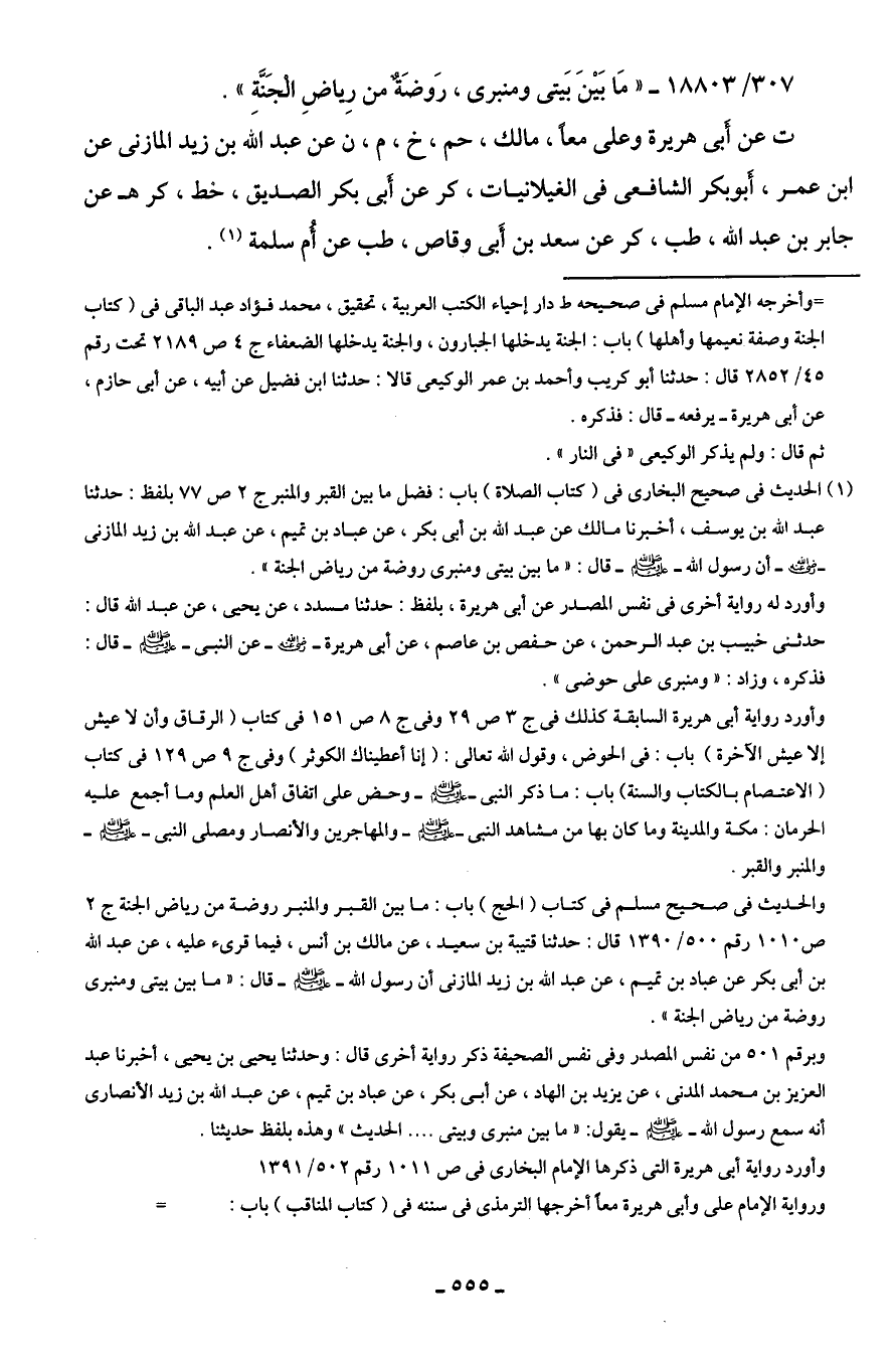 307/ 18803 - "مَا بَينَ بَيتى ومنبرى، رَوضَةٌ من رِياضِ الْجَنَّةِ".