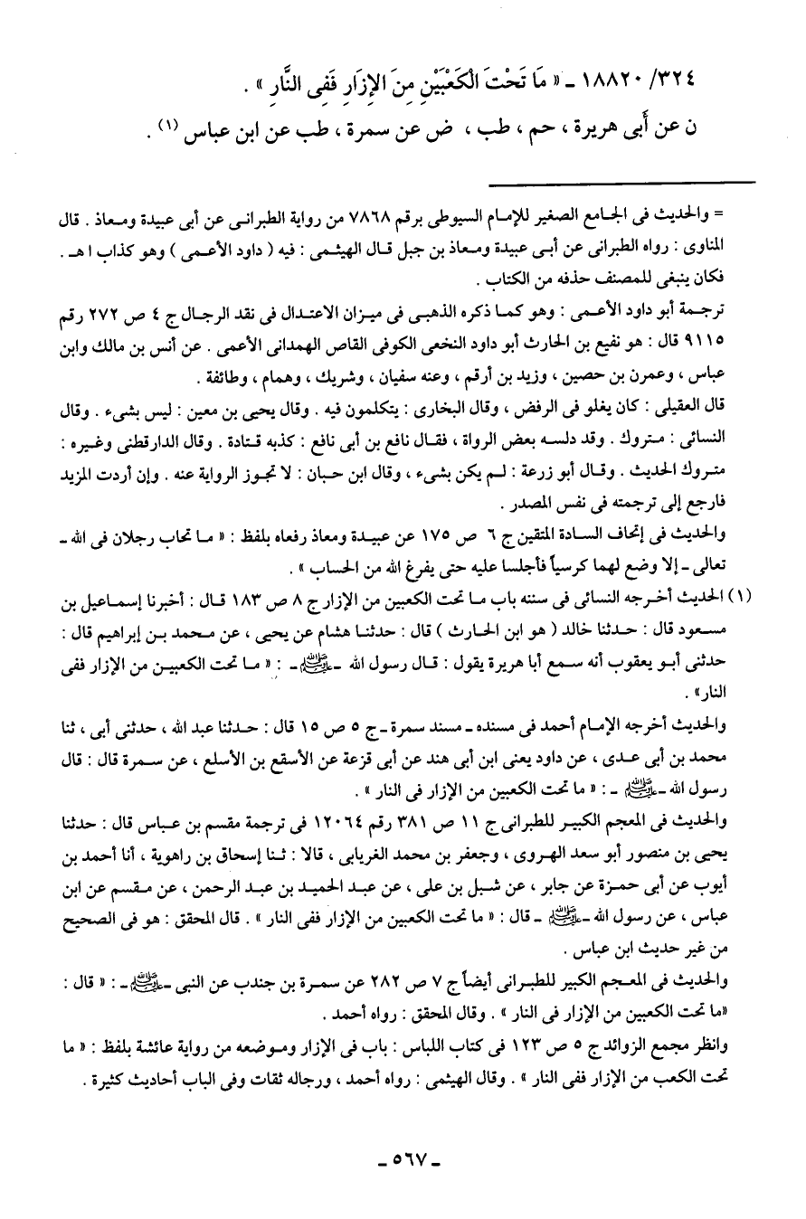 324/ 18820 - "مَا تَحْتَ الْكَعْبَينِ مِنَ الإِزَارِ فَفِي النَّارِ".