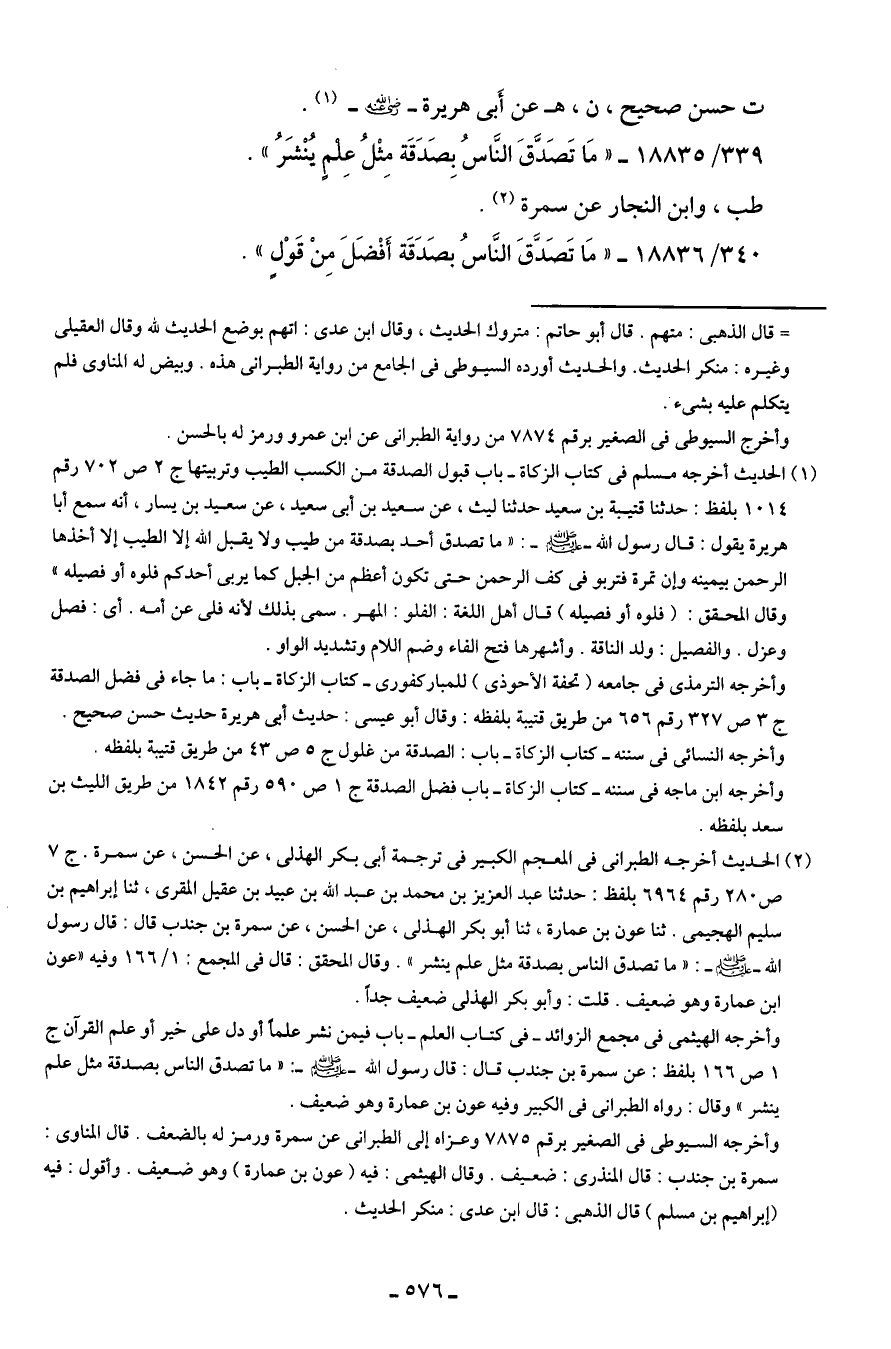 339/ 18835 - "مَا تَصَدَّقَ النّاسُ بِصَدَقَة مِثْلُ عِلمٍ يُنْشَرُ".