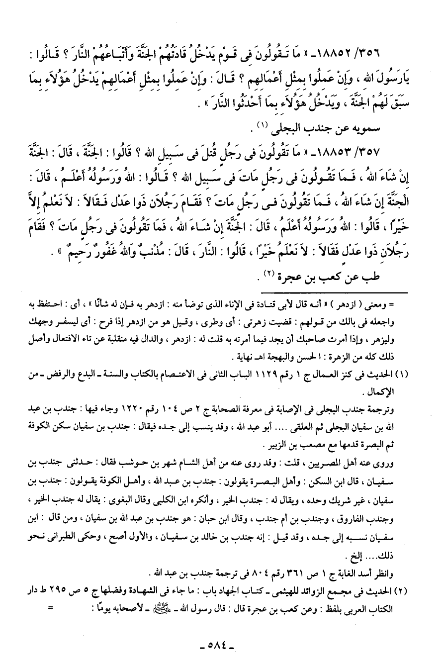 وانظر أسد الغابة ج 1 ص 361 رقم 804 في ترجمة جندب بن عبد الله.