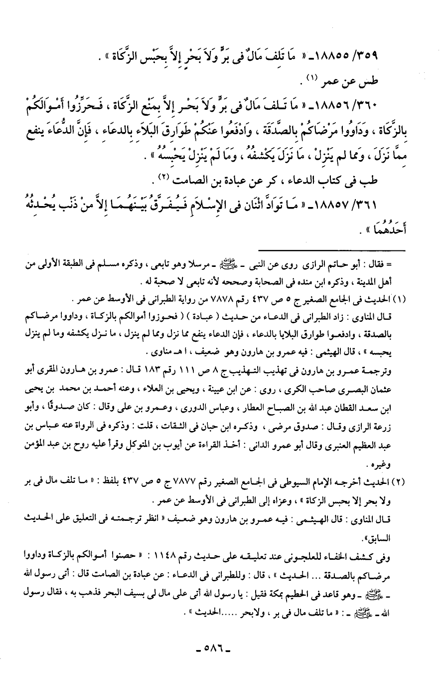 359/ 18855 - "مَا تَلِفَ مَالٌ في بَرٍّ وَلَا بَحْرٍ إِلّا بِحَبْس الزَّكَاة".