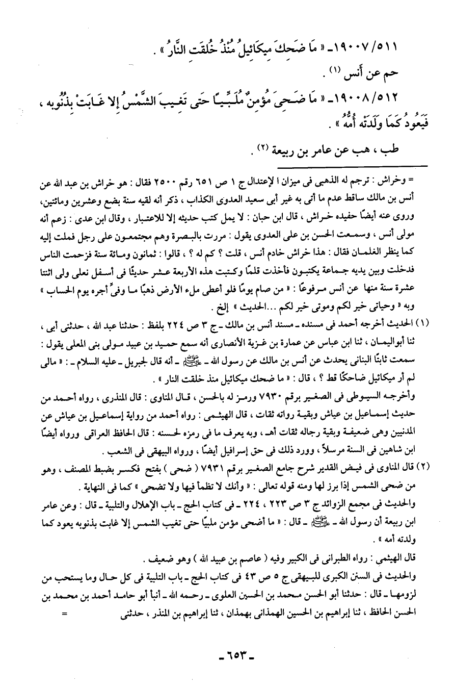 511/ 19007 - "مَا ضَحِكَ مِيكَائِيلُ مُنْذُ خُلقَتِ النَّارُ".
