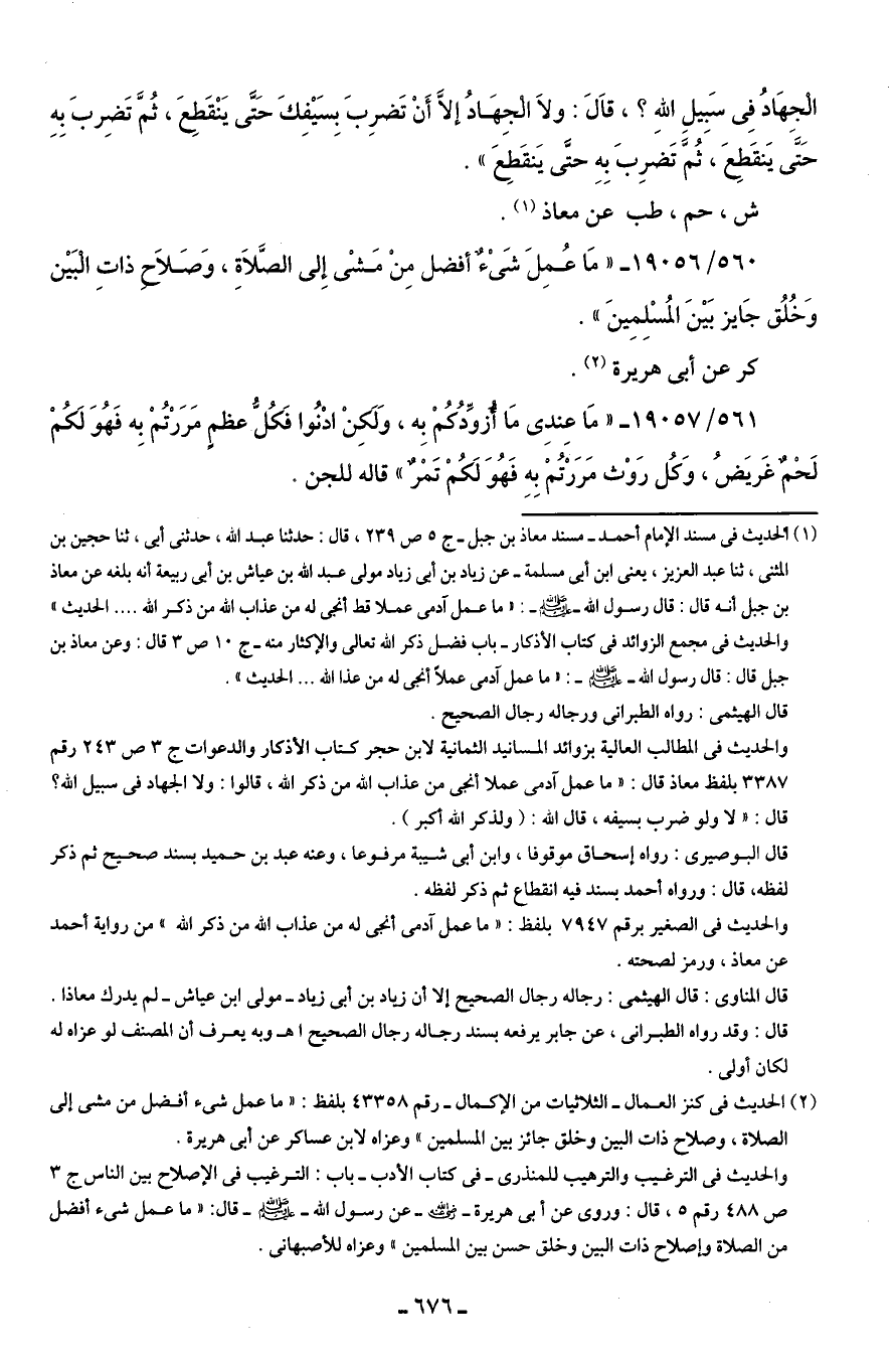 560/ 19056 - "مَا عُمِلَ شَيْءٌ أفضل مِنْ مَشْى إِلى الصَّلاةِ، وَصَلاح ذاتِ البَين وَخُلُق جَايز بَينَ المُسْلِمِينَ".