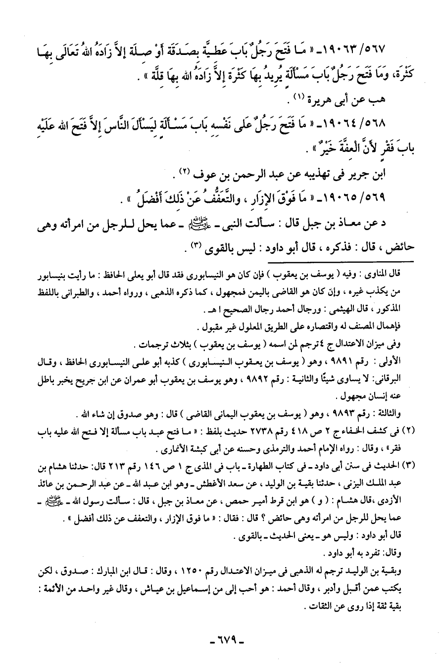 (¬2) في كشف الخفاء ج 2 ص 418 رقم 2738 حديث بلفظ: "ما فتح عبد باب مسألة إلا فتح الله عليه باب فقر"، وقال: رواه الإمام أحمد والترمذي وحسنه عن أبي كبشة الأنمارى.
