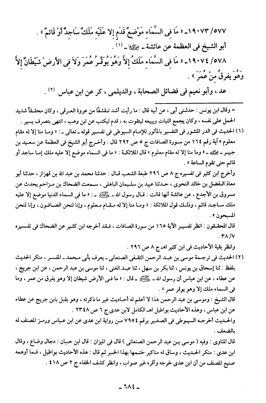 577/ 19073 - "مَا فِي السَّمَاءِ مَوْضِعُ قَدَمٍ إِلا عَلَيهِ مَلَكٌ سَاجِدٌ أوْ قَائمٌ".