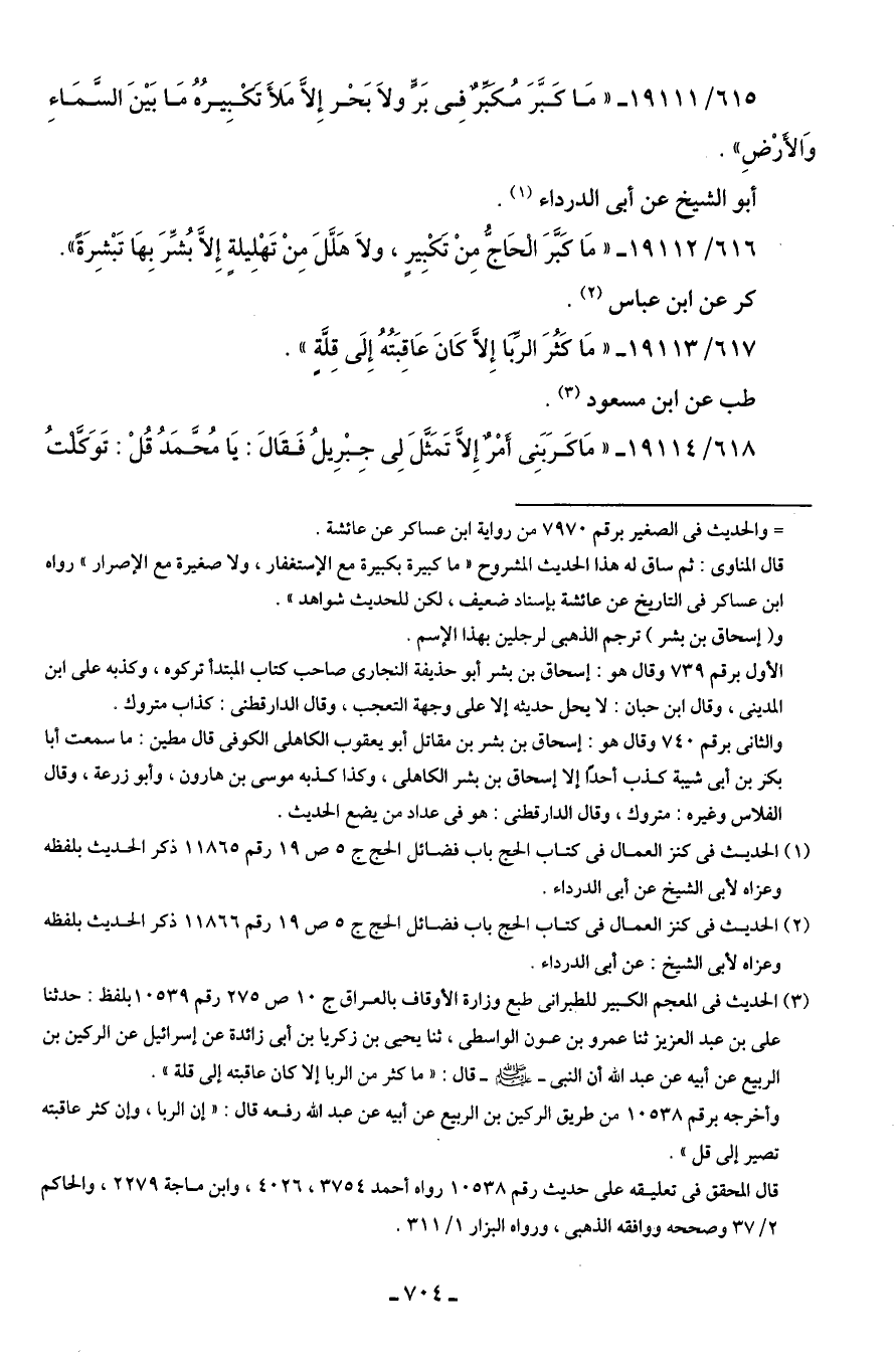 615/ 19111 - "مَا كَبَّرَ مُكبِّرٌ فِي بَرٍّ ولا بَحْر إِلَّا مَلأَ تَكْبِيرُهُ مَا بَينَ السَّمَاءِ وَالأَرْضِ".