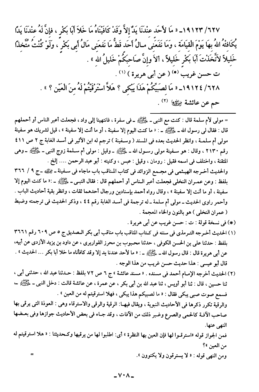 628/ 19124 - "مَا لِصَبيِّكُمْ هَذَا يَبْكِى؟ هَلَّا اسْتَرْقَيتُمْ لَهُ مِنَ الْعَين؟ ".