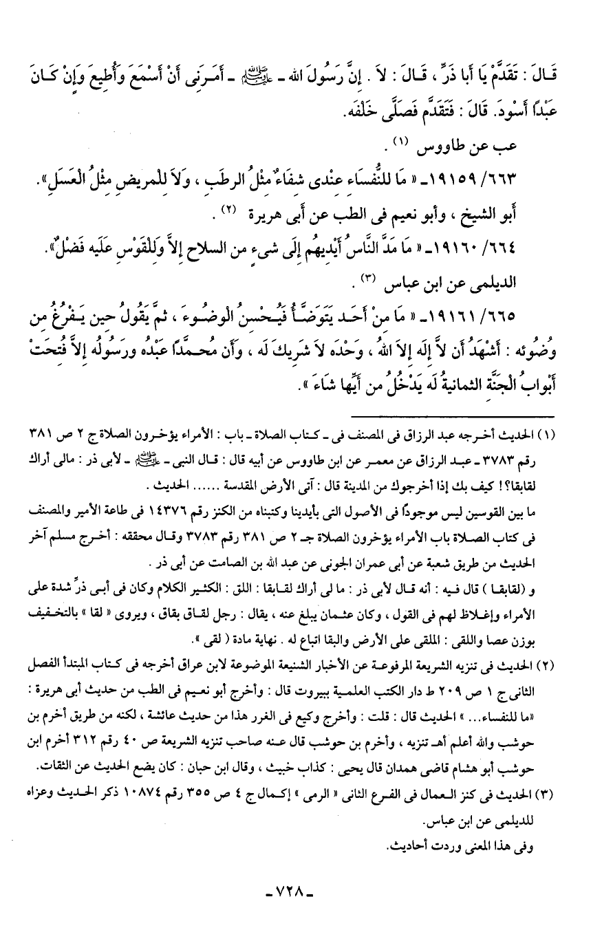 663/ 19159 - "مَا للنُّفسَاءِ عِنْدي شِفَاءٌ مِثلُ الرطَبِ، وَلَا لِلْمريضِ مِثْلُ الْعَسَلِ".