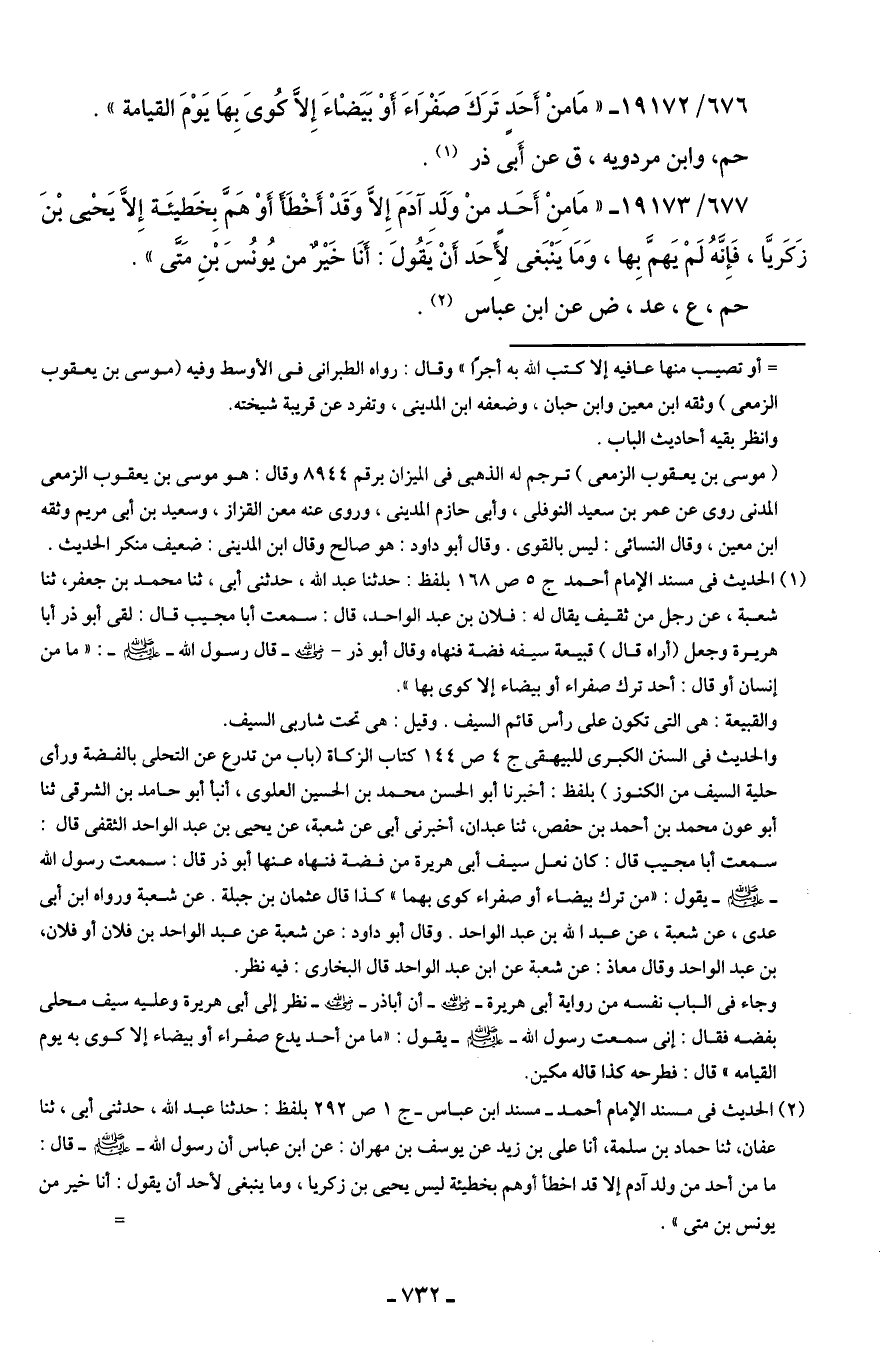 676/ 19172 - "مَا منْ أَحَدٍ تَرَكَ صَفْرَاءَ أَوْ بَيَضْاءَ إِلَّا كُويَ بِهَا يَوْمَ القيامة".