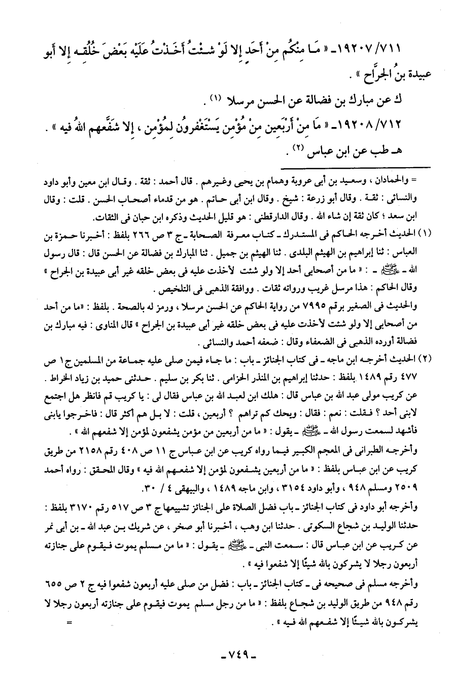 712/ 19208 - "مَا مِنْ أَرْبَعِين مِنْ مُؤْمِن يَسْتَغْفروُن لِمُؤْمِن، إِلا شَفَّعهم اللهُ فيه".