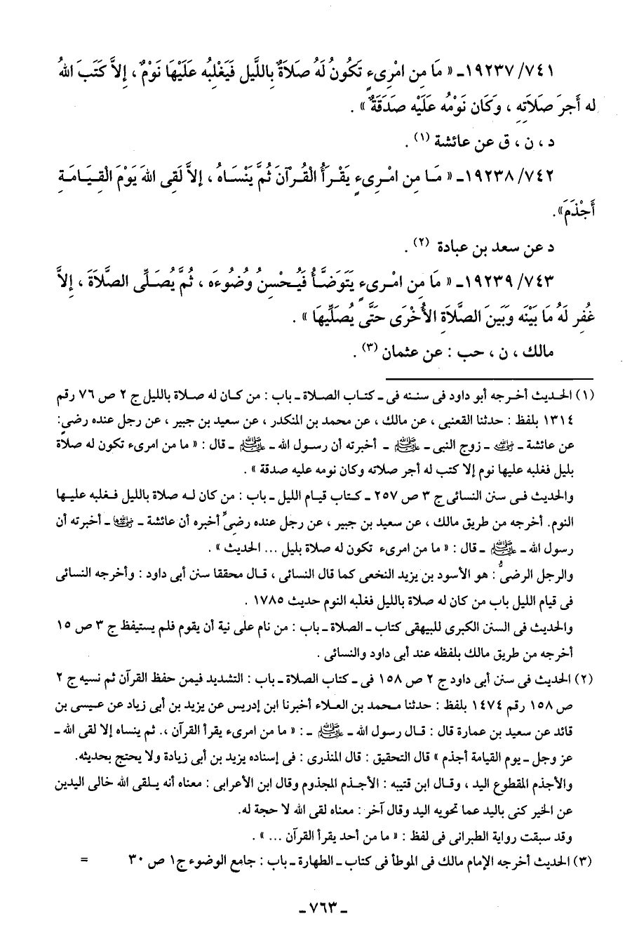 741/ 19237 - "مَا مِن امْرِئٍ تَكُونُ لَهُ صَلاة بِاللَّيل فَيَغْلِبُه عَلَيهَا نَوْم، إلا كَتَبَ اللهُ له أجرَ صَلاتِهِ، وَكَان نَوْمُه عَلَيه صَدَقَة".