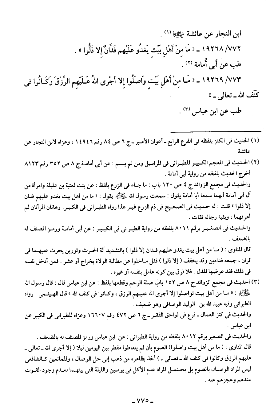 773/ 19269 - "مَا مِنْ أَهْلِ بَيت وَاصَلُوا إِلا أَجْرى اللهُ عَلَيهِم الرِّزْقَ وَكَانُوا في كَنَف الله -تعالى-"