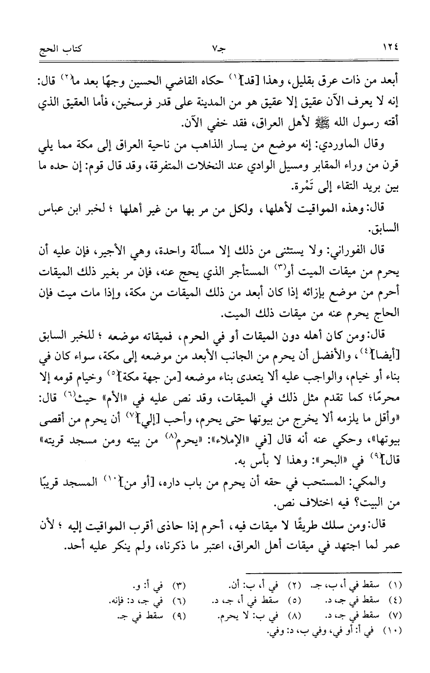 أبعد من ذات عرق بقليل، وهذا [قد] حكاه القاضي الحسين وجهاً بعدما قال: إنه لا يعرف الآن عقيق إلا عقيق هو من المدينة على قدر فرسخين، فأما العقيق الذي أقته رسول الله صلى الله عليه وسلم هو لأهل العراق، فقد خفي الآن.