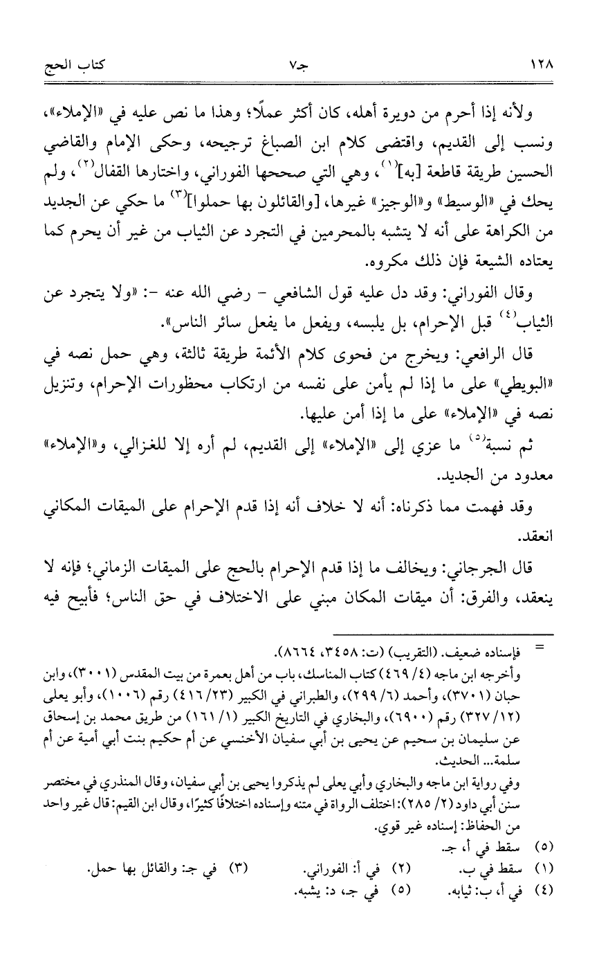وقال الفوراني: وقد دل عليه قول الشافعي - رضي الله عنه -: "ولا يتجرد عن الثياب قبل الإحرام، بل يلبسه، ويفعل ما يفعل سائر الناس".