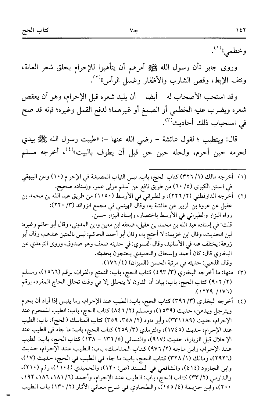 وقد استحب الأصحاب له - أيضاً - أن يلبد شعره قبل الإحرام، وهو أن يعقص شعره ويضرب عليه الخطمي أو الصمغ أو غيرهما؛ لدفع القمل وغيره؛ فإنه قد صح في استحباب ذلك أحاديث.