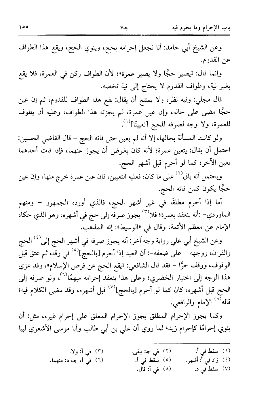 قال مجلي: وفيه نظر، ولا يمتنع أن يقال: يقع هذا الطواف للقدوم، ثم إن عين حجاً مضى على حاله، وإن عين عمرة، لم يجزئه هذا الطواف، وعليه أن يطوف للعمرة، ولا وجه لصرفه للحج [تعيياً].