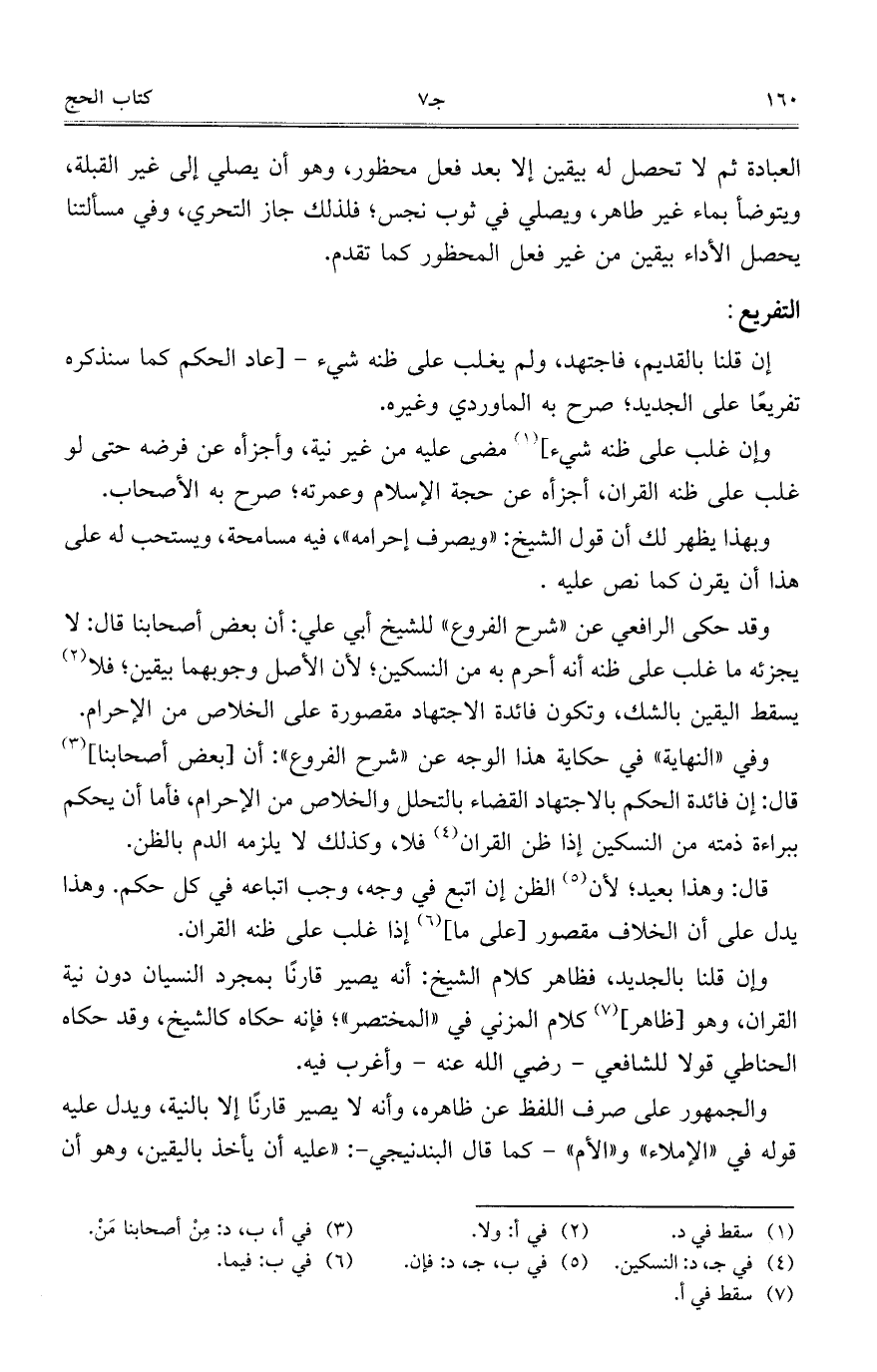 وفي "النهاية" في حكاية هذا الوجه عن "شرح الفروع": أن [بعض أصحابنا] قال: إن فائدة الحكم بالاجتهاد القضاء بالتحلل والخلاص من الإحرام، فأما أن يحكم ببراءة ذمته من التسكين إذا ظن القران فلا، وكذلك لا يلزمه الدم بالظن.