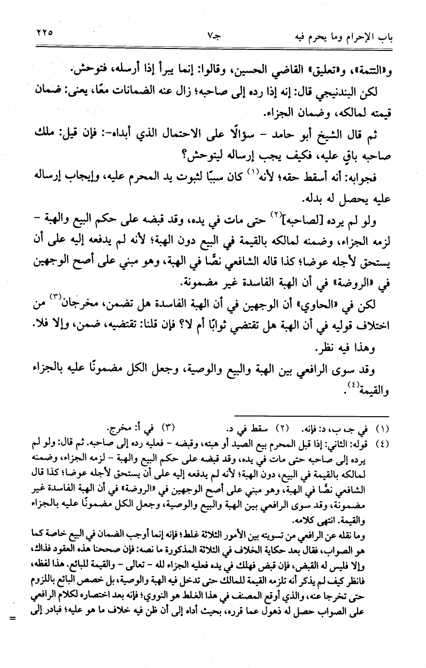 وقد سوى الرافعي بين الهبة والبيع والوصية، وجعل الكل مضموناً عليه بالجزاء والقيمة.