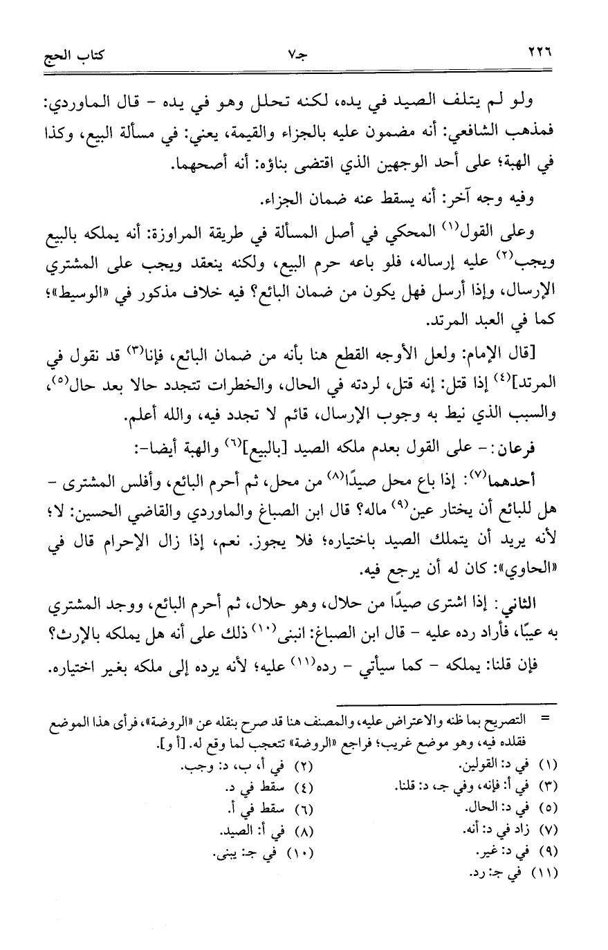 أحدهما: إذا باع محل صيدا من محل، ثم أحرم البائع، وأفلس المشترى- هل للبائع أن يختار عين ماله؟ قال ابن الصباغ والماوردي والقاضي الحسين: لا؛ لأنه يريد أن يتملك الصيد باختياره؛ فلا يجوز. نعم، إذا زال الإحرام قال في "الحاوي": كان له أن يرجع فيه.