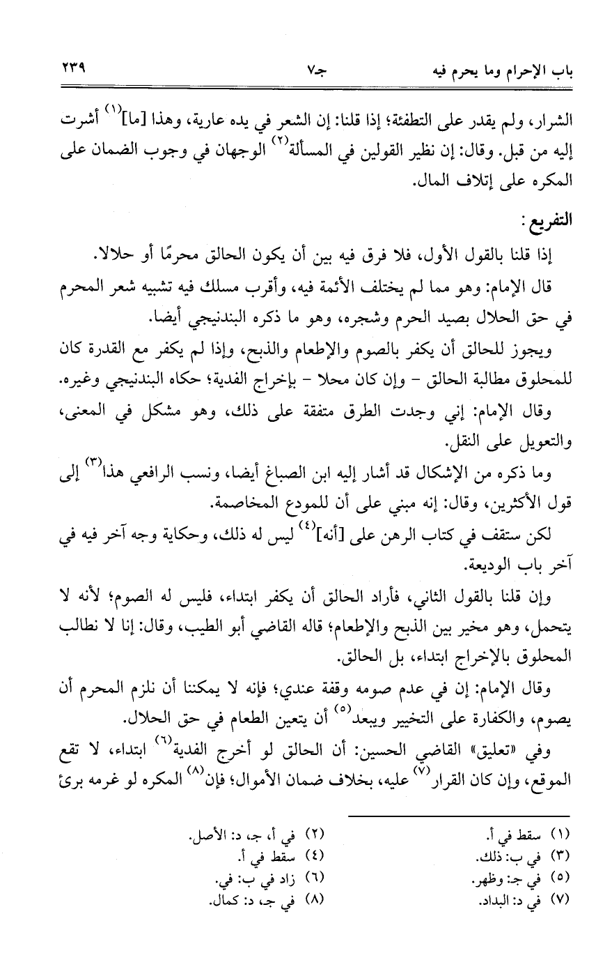وقال الإمام: إن في عدم صومه وقفة عندي؛ فإنه لا يمكننا أن نلزم المحرم أن يصوم، والكفارة على التخيير ويبعد أن يتعين الطعام في حق الحلال.