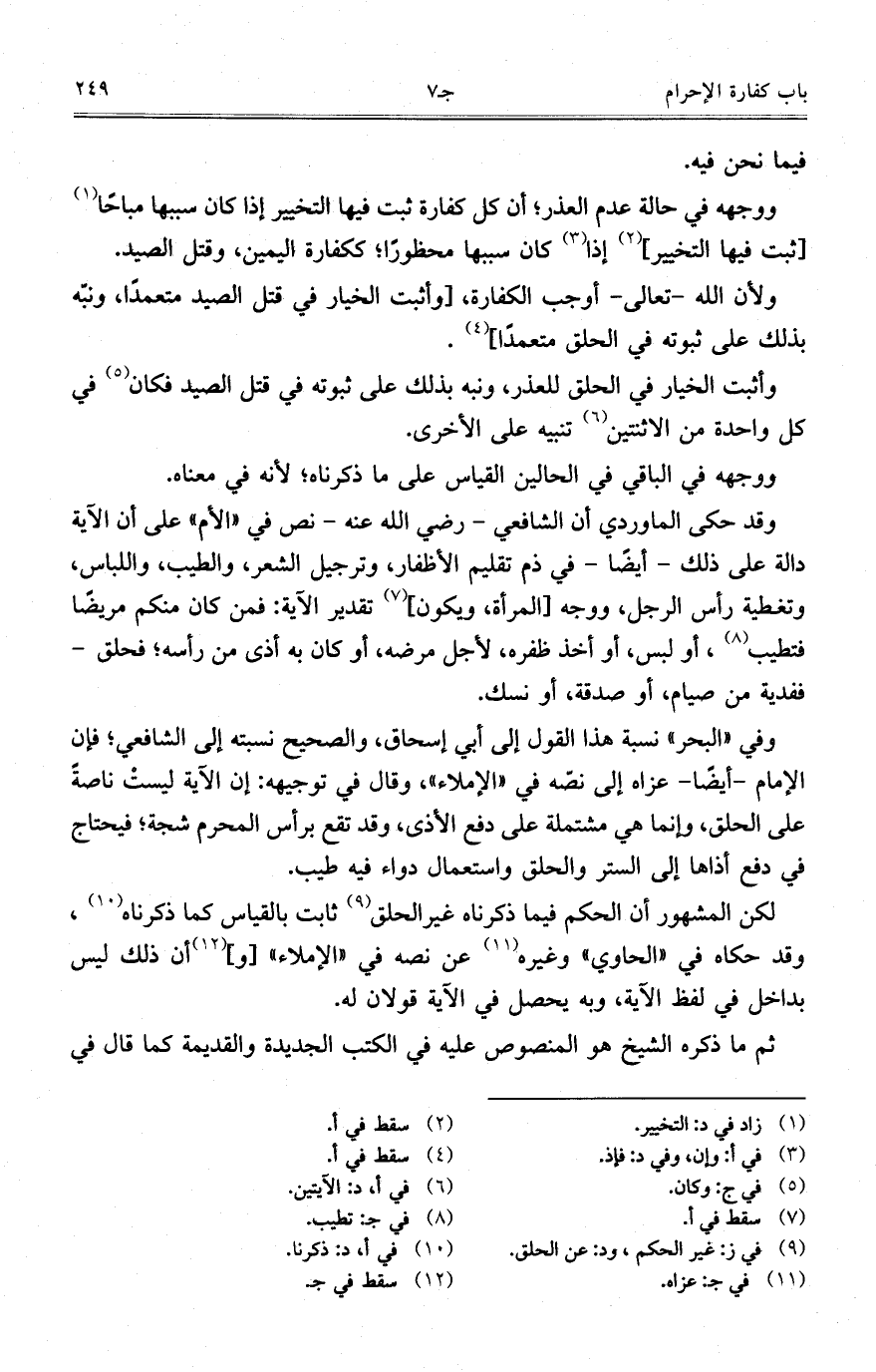وفي "البحر" نسبة هذا القول إلى أبي إسحاق، والصحيح نسبته إلى الشافعي؛ فإن الإمام – أيضاً – عزاه إلى نصّه في "الإملاء"، وقال في توجيهه: إن الآية ليستْ ناصة على الحلق، وإنما هي مشتملة على دفع الأذى، وقد تقع برأس المحرم شجة؛ فيحتاج في دفع أذاها إلى الستر والحلق واستعمال دواء فيه طيب.