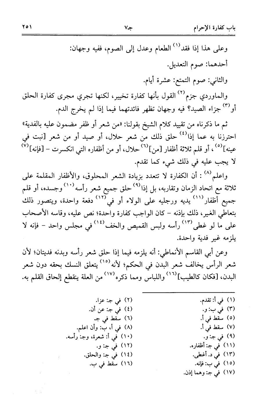 والماوردي جزم القول بأنها كفارة تخيير، لكنها تجري مجرى كفارة الحلق أو جزاء الصيد؟ فيه وجهان تظهر فائدتهما فيما إذا لم يخرج الدم.