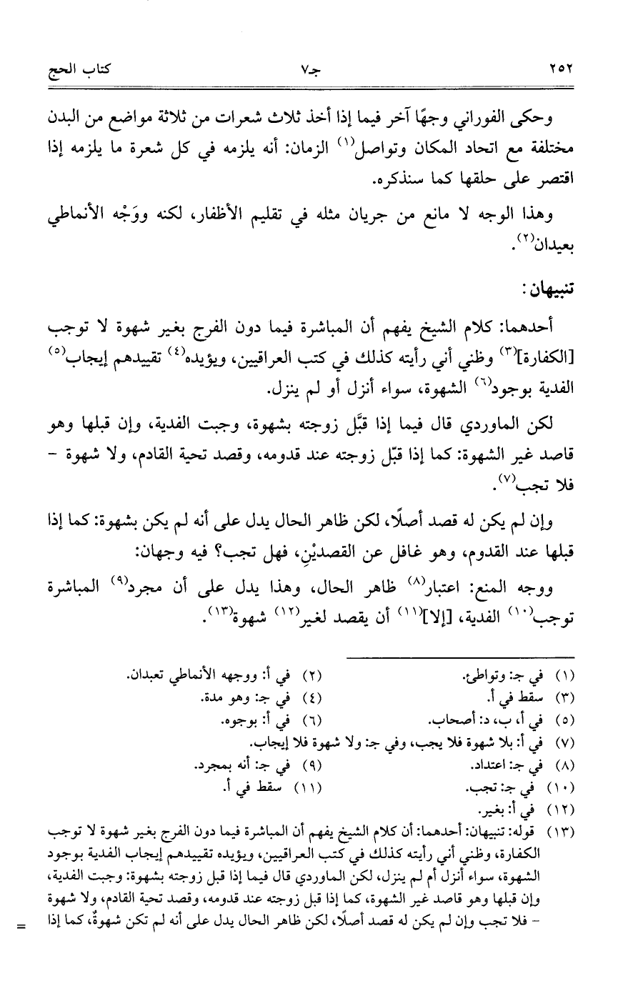 أحدهما: كلام الشيخ يفهم أن المباشرة فيما دون الفرج بغير شهوة لا توجب [الكفارة] وظني أني رأيته كذلك في كتب العراقيين، ويؤيده تقييدهم إيجاب الفدية يوجود الشهوة، سواء أنزل أو لم ينزل.