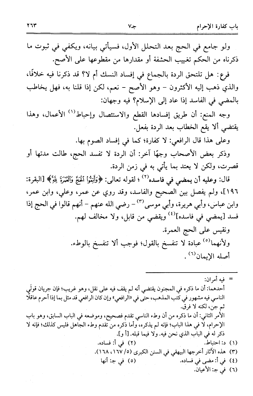 وذكر بعض الأصحاب وجهاً آخر: أن الردة لا تفسد الحج، طالت مدتها أو قصرت، ولكن لا يعتد بما يأتي به في زمن الردة.