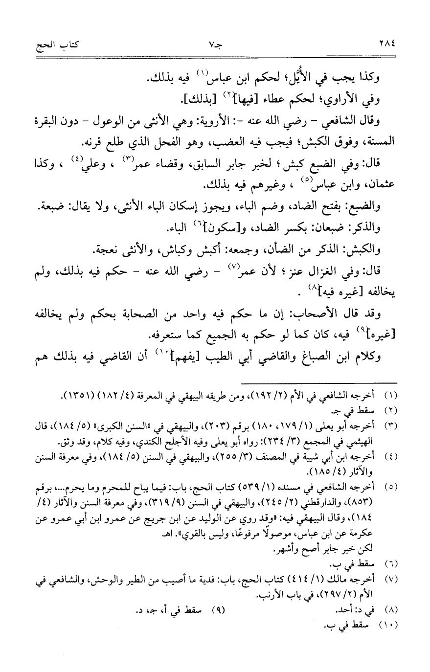 وقال الشافعي- رضي الله عنه-: الأروية: وهي الأنثى من الوعول- دون البقرة المسنة, وفوق الكبش؛ فيجب فيه الغضب, وهو الفحل الذي طلع قرنه.