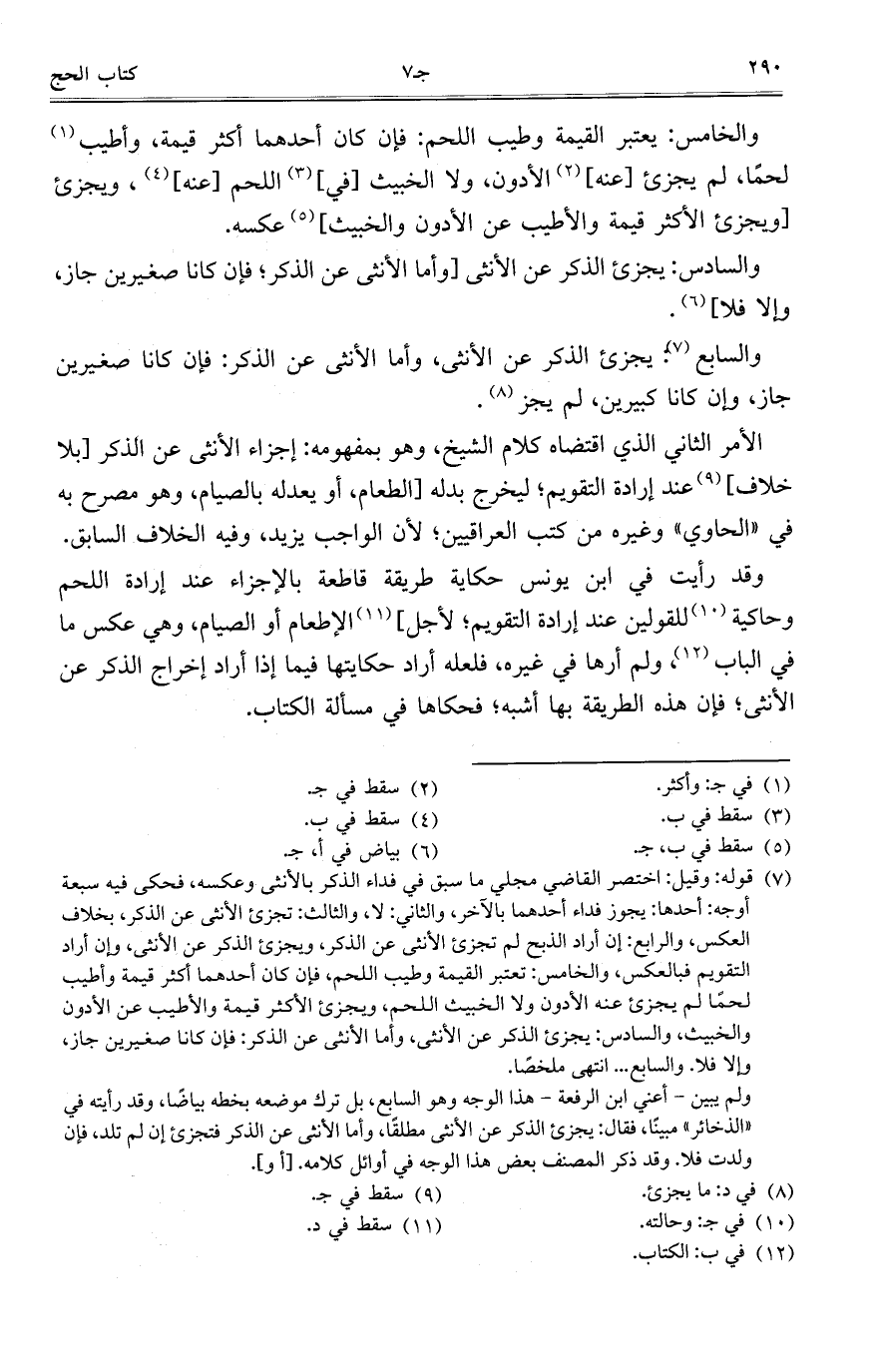 والخامس: يعتبر القيمة وطيب اللحم: فإن كان أحدهما أكثر قيمة, وأطيب لحمًا, لم يجزىْ [عنه] الأدون, ولا الخبيث [في] اللحم [عنه] , ويجزئ [ويجزئ الأكثر قيمة والأطيب عن الأدون والخبيث] عكسه.