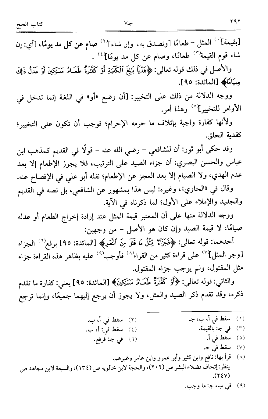 ووجه الدلالة منها علي إن المعتبر قيمة المثل عند إرادة إخراج الطعام أو عدله صيامًا لا قيمة الصيد وإن كان هو الأصل- من وجهين: