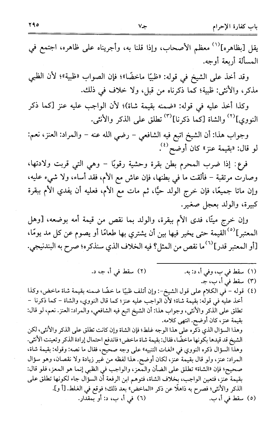 وكذا اخذ عليه في قوله: "ضمنه بقيمة شاة"؛ لأن الواجب عليه عنز [كما ذكر النووي] والشاة [كما ذكرنا] تطلق علي الذكر والأنثى.