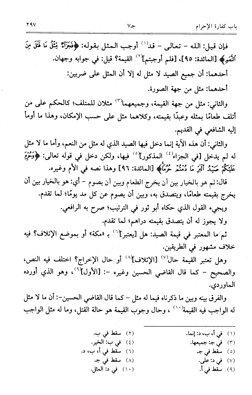 فإن قيل: الله- تعالى- قد أوجب المثل بقوله: {فَجَزَاءٌ مِثْلُ مَا قَتَلَ مِنْ النَّعَمِ} [المائدة:95] , [فلم أوجبتم] القيمة؟ قيل: في جوابه وجهان.