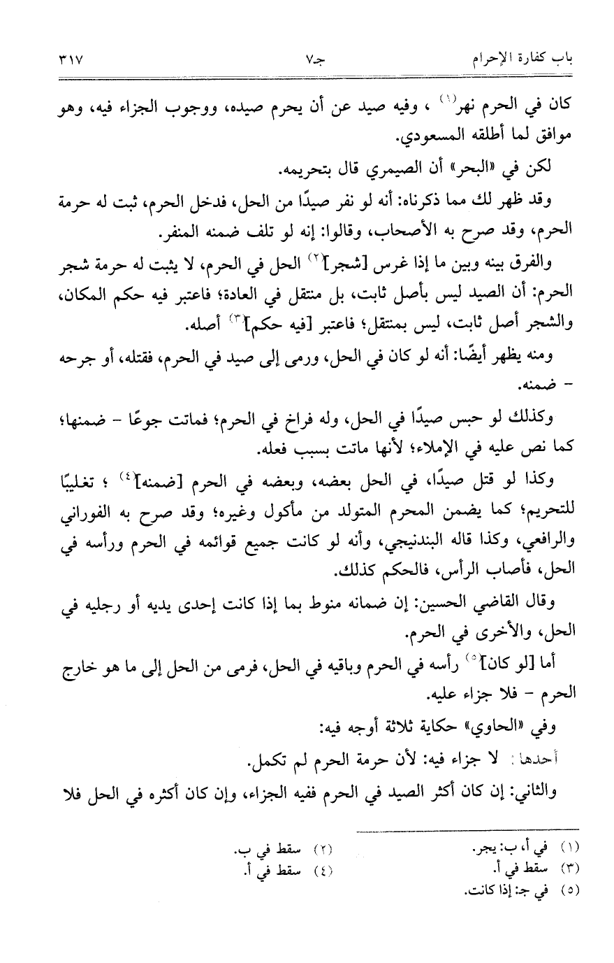 كان في الحرم نهر، وفيه صيد عن أن يحرم صيده، ووجوب الجزاء فيه، وهو موافق لما أطلقه المسعودي.