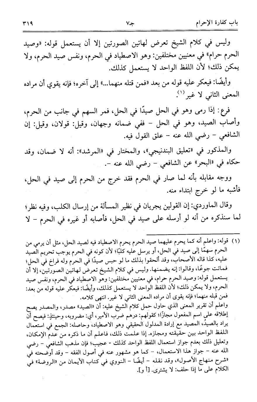 وليس في كلام الشيخ تعرض لهاتين الصورتين إلا أن يستعمل قوله: "وصيد الحرم حرام" في معنيين مختلفين: وهو الاصطياد في الحرم، ونفس صيد الحرم، ولا يمكن ذلك؛ لأن اللفظ الواحد لا يستعمل كذلك.