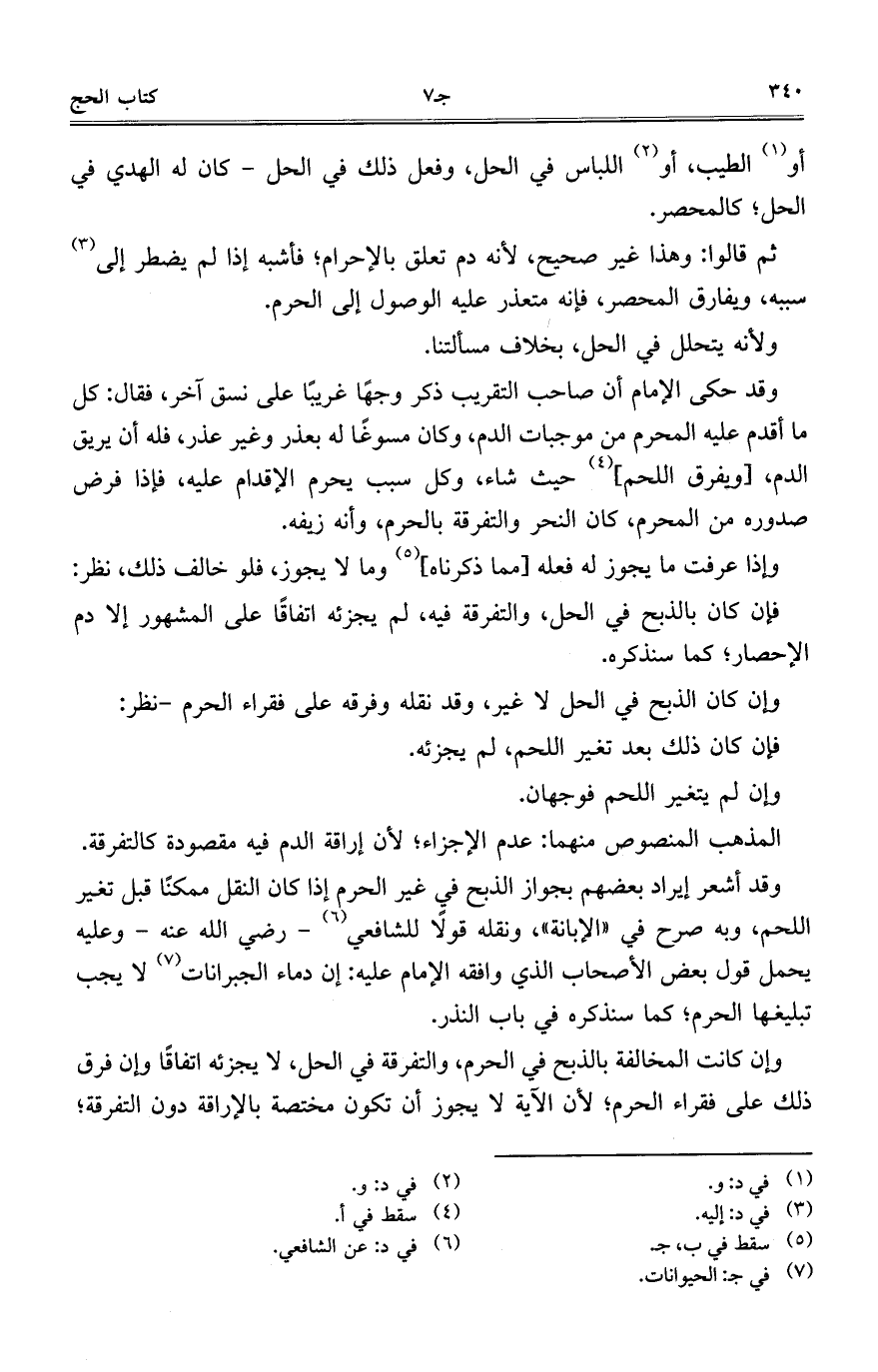 وقد أشعر إيراد بعضهم بجواز الذبح في غير الحرم إذا كان النقل ممكنًا قبل تغير اللحم, وبه صرح في "الإبانة", ونقله قولًا للشافعي- رضي الله عنه- وعليه يحمل قول بعض الأصحاب الذي وافقه الإمام عليه: إن دماء الجبرانات لا يجب تبليغها الحرم؛ كما سنذكره في باب النذر.