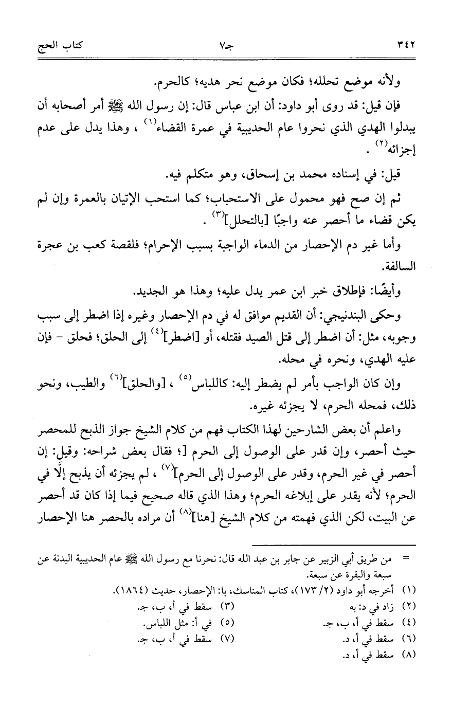 فإن قيل: قد روى أبو داود: أن ابن عباس قال: إن رسول الله- صلى الله عليه وسلم- أمر أصحابه أن يبدلوا الهدي الذي نحروا عام الحديبية في عمرة القضاء, وهذا يدل على عدم إجزائه.