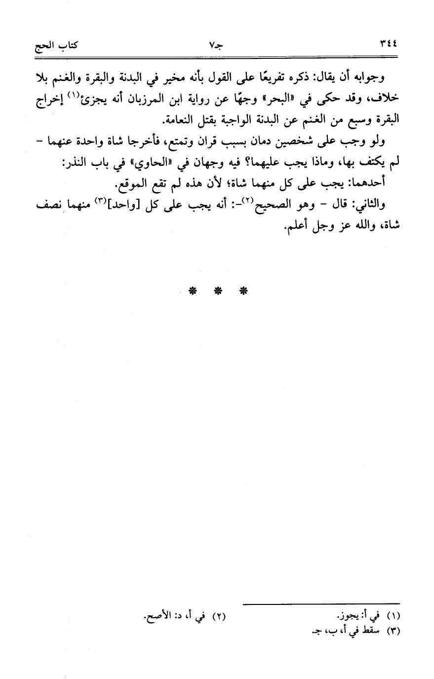 ولو وجب على شخصين دمان بسبب قران وتمتع, فأخرجا شاة واحدة عنهما- لم يكتف بها, وماذا يجب عليهما؟ فيه وجهان في "الحاوي" في باب النذر: