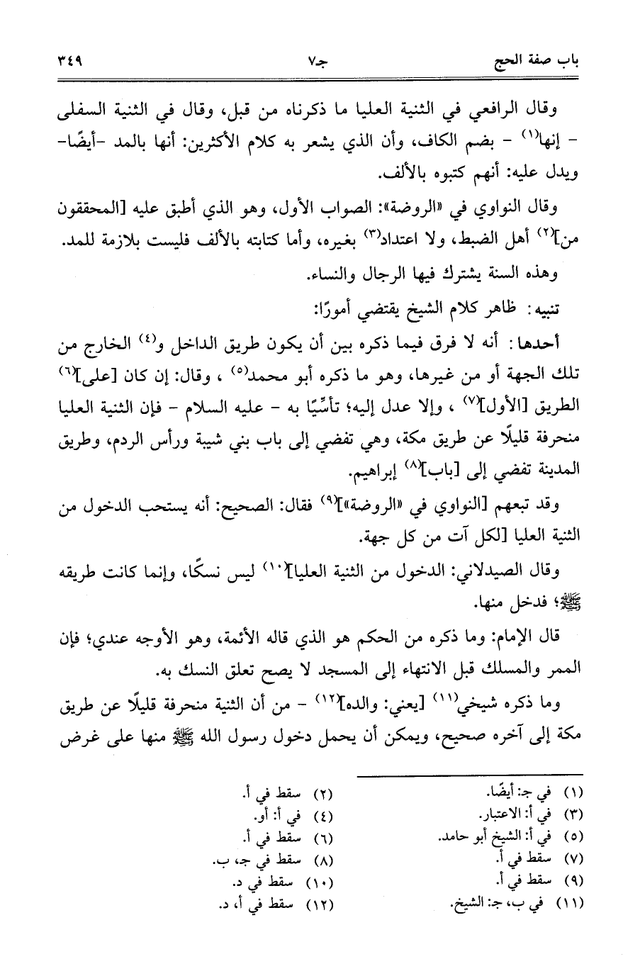 وقال الرافعي في الثنية العليا ما ذكرناه من قبل, وقال في الثنية السفلى-إنها- بضم الكاف, وأن الذي يشعر به كلام الأكثرين: أنها بالمد-أيضًا- ويدل عليه: أنهم كتبوه بالألف.