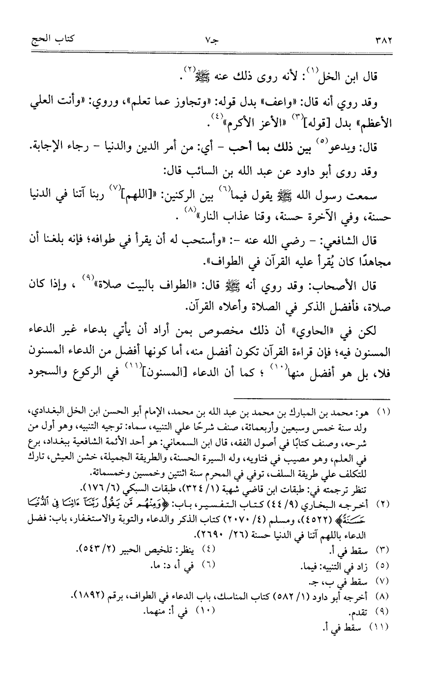 قال الأصحاب: وقد روي أنه صلى الله عليه وسلم قال: "الطواف بالبيت صلاة"، وإذا كان صلاة، فأفضل الذكر في الصلاة وأعلاه القرآن.