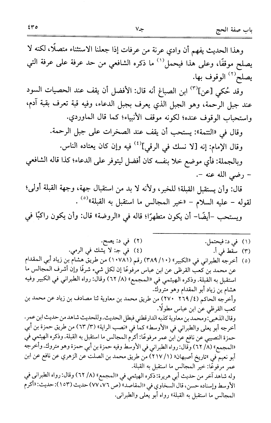 وهذا الحديث يفهم أن وادي عرنة من عرفات إذا جعلنا الاستغناء متصلاً، لكنه لا يصلح موقفاً، وعلى هذا فيحمل ما ذكره الشافعي من حد عرفة على عرفة التي يصلح الوقوف بها.