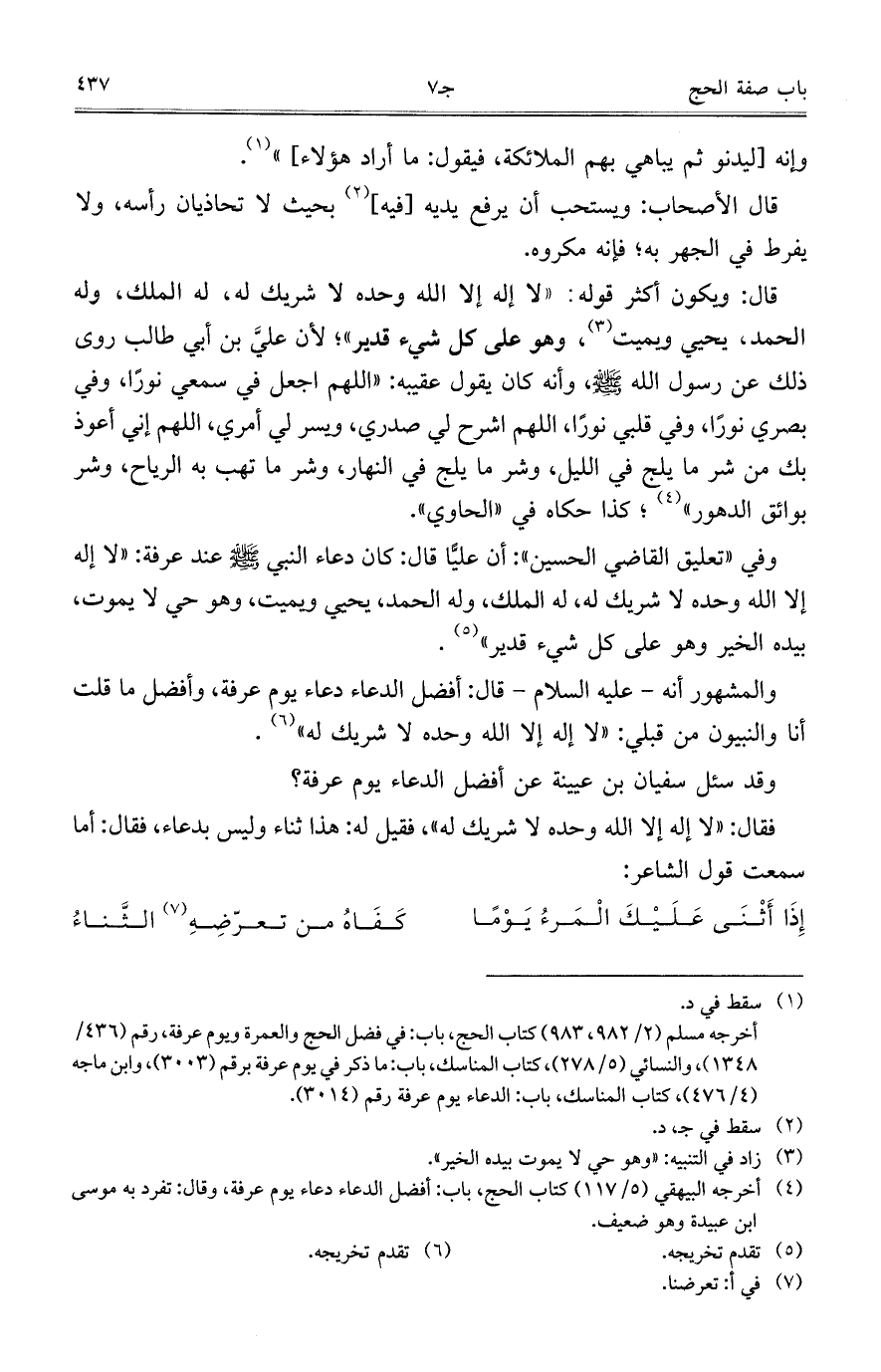 والمشهور أنه - عليه السلام - قال: أفضل الدعاء دعاء يوم عرفة، وأفضل ما قلت أنا والنبيون من قبلي: "لا إله إلا الله وحدم لا شريك له".