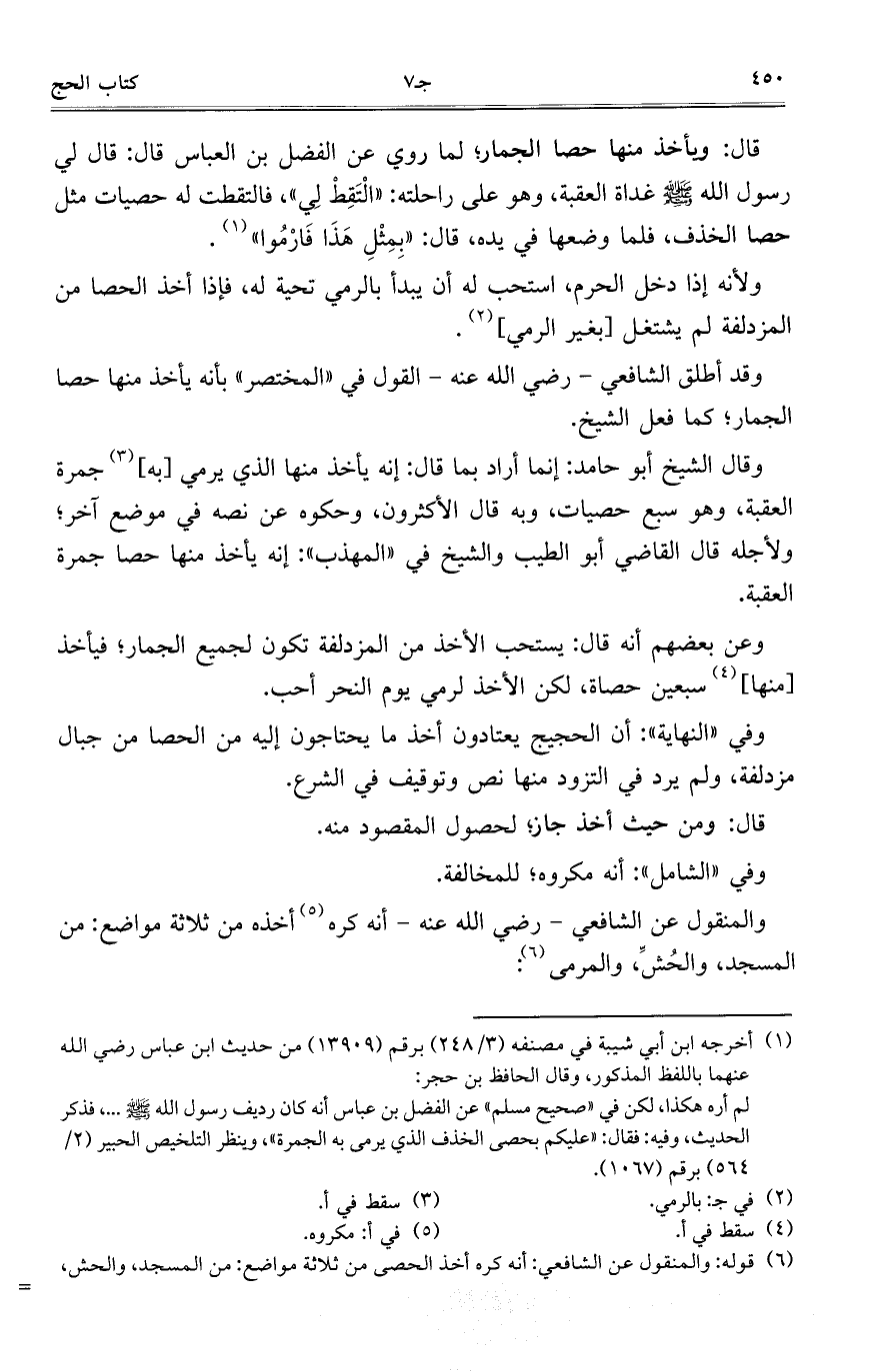 وقد أطلق الشافعي - رضي الله عنه - القول في "المختصر" بأنه يأخذ منها حصا الجمار؛ كما فعل الشيخ.