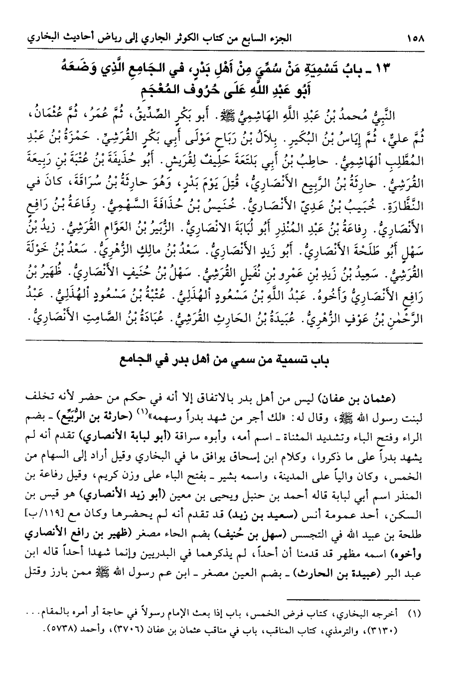 13 - باب تَسْمِيةُ مَنْ سُمِّىَ مِنْ أَهْلِ بَدْرٍ فِي الْجَامِعِ الَّذِى وَضَعَهُ أَبُو عَبْدِ اللَّهِ عَلَى حُرُوفِ الْمُعْجَمِ