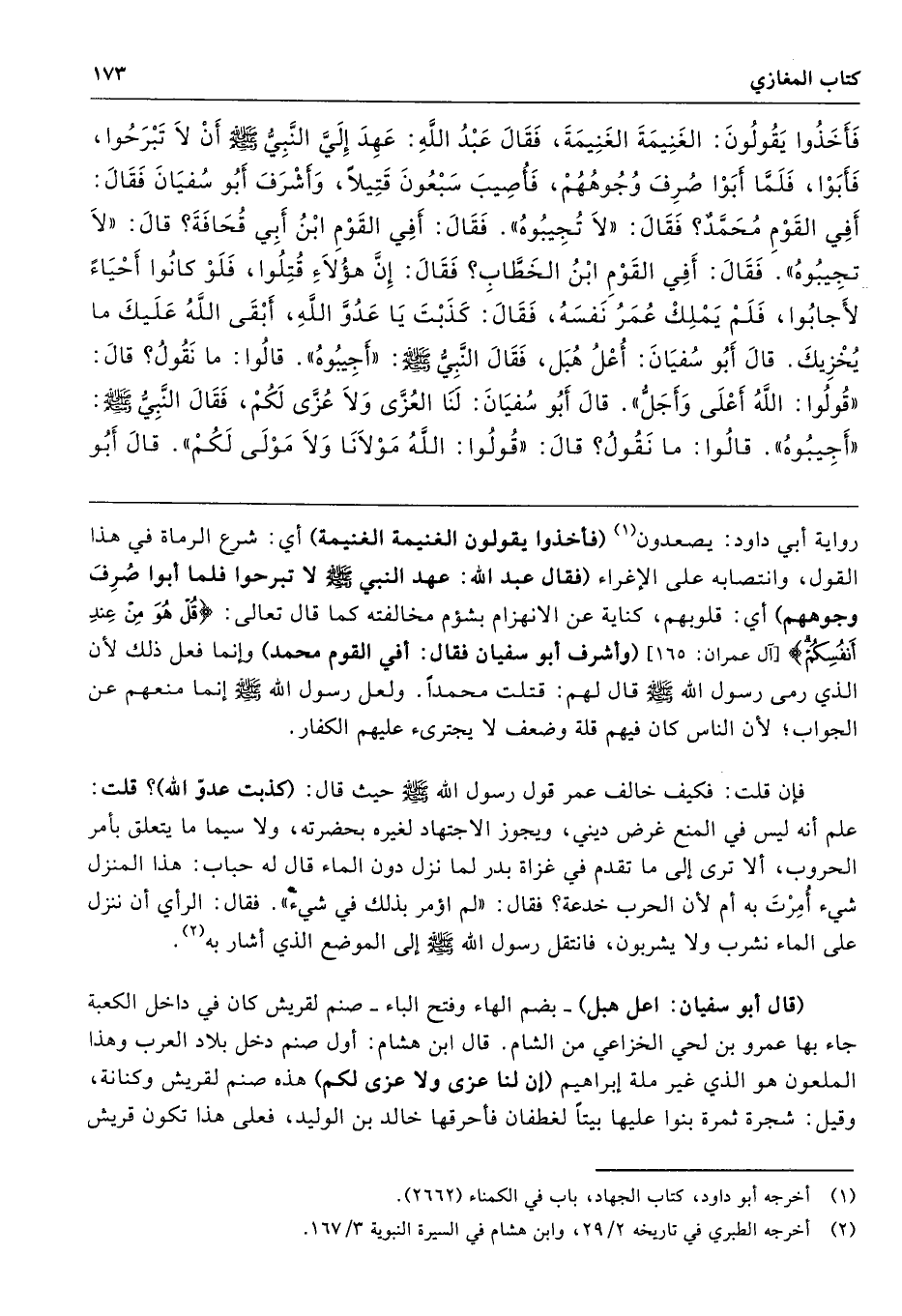 (قال أبو سفيان: اعل هبل) -بضم الهاء وفتح الباء- صنم لقريش كان في داخل الكعبة جاء بها عمرو بن لحي الخزاعي من الشام. قال ابن هشام: أول صنم دخل بلاد العرب وهذا الملعون هو الَّذي غير ملة إبراهيم (إن لنا عزى ولا عزى لكم) هذه صنم لقريش وكنانة، وقيل: شجرة ثمرة بنوا عليها بيتًا لغطفان فأحرقها خالد بن الوليد، فعلى هذا تكون قريش