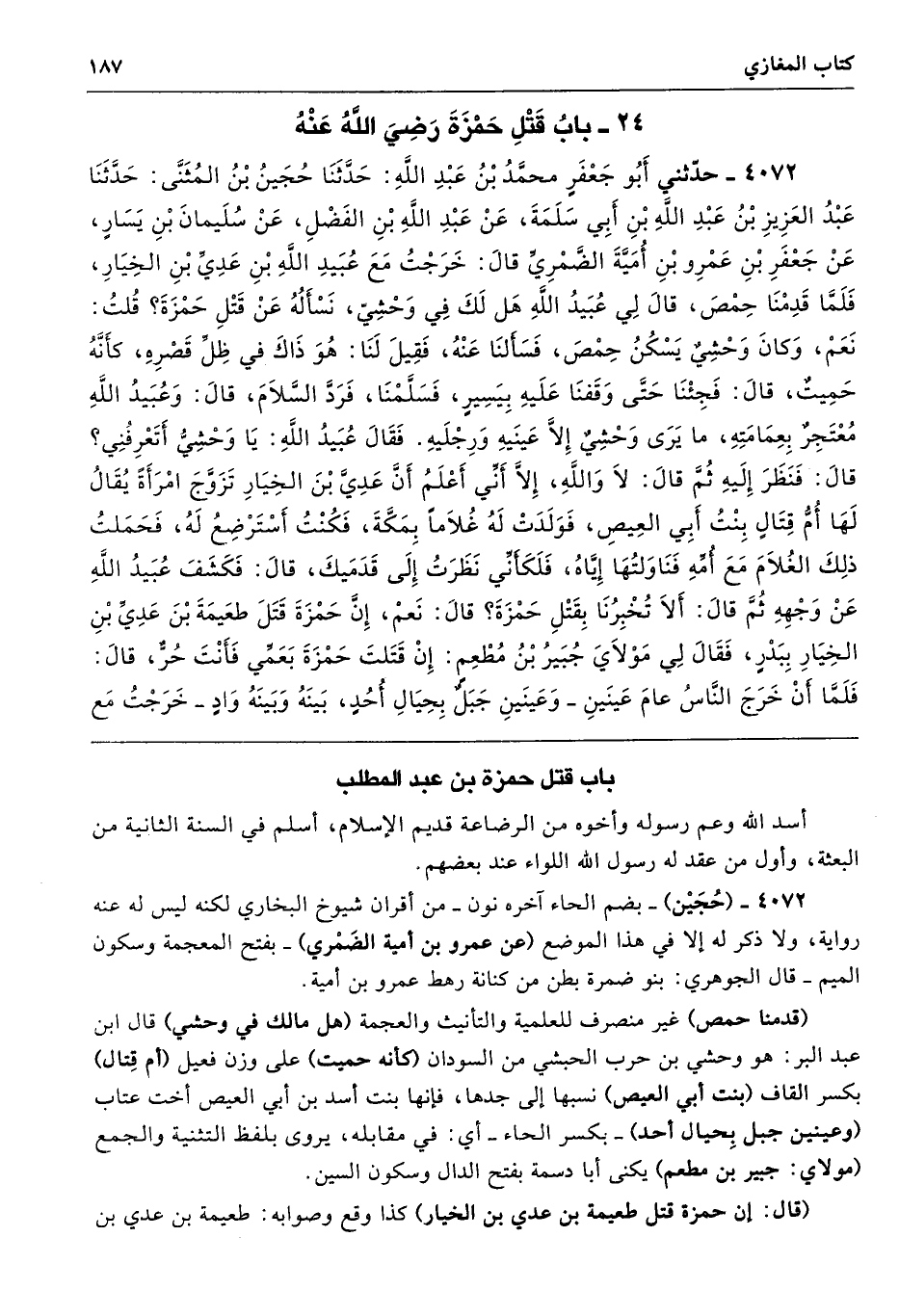 (قال: إن حمزة قتل طعيمة بن عدي بن الخبار) كذا وقع وصوابه: طعيمة بن عدي بن